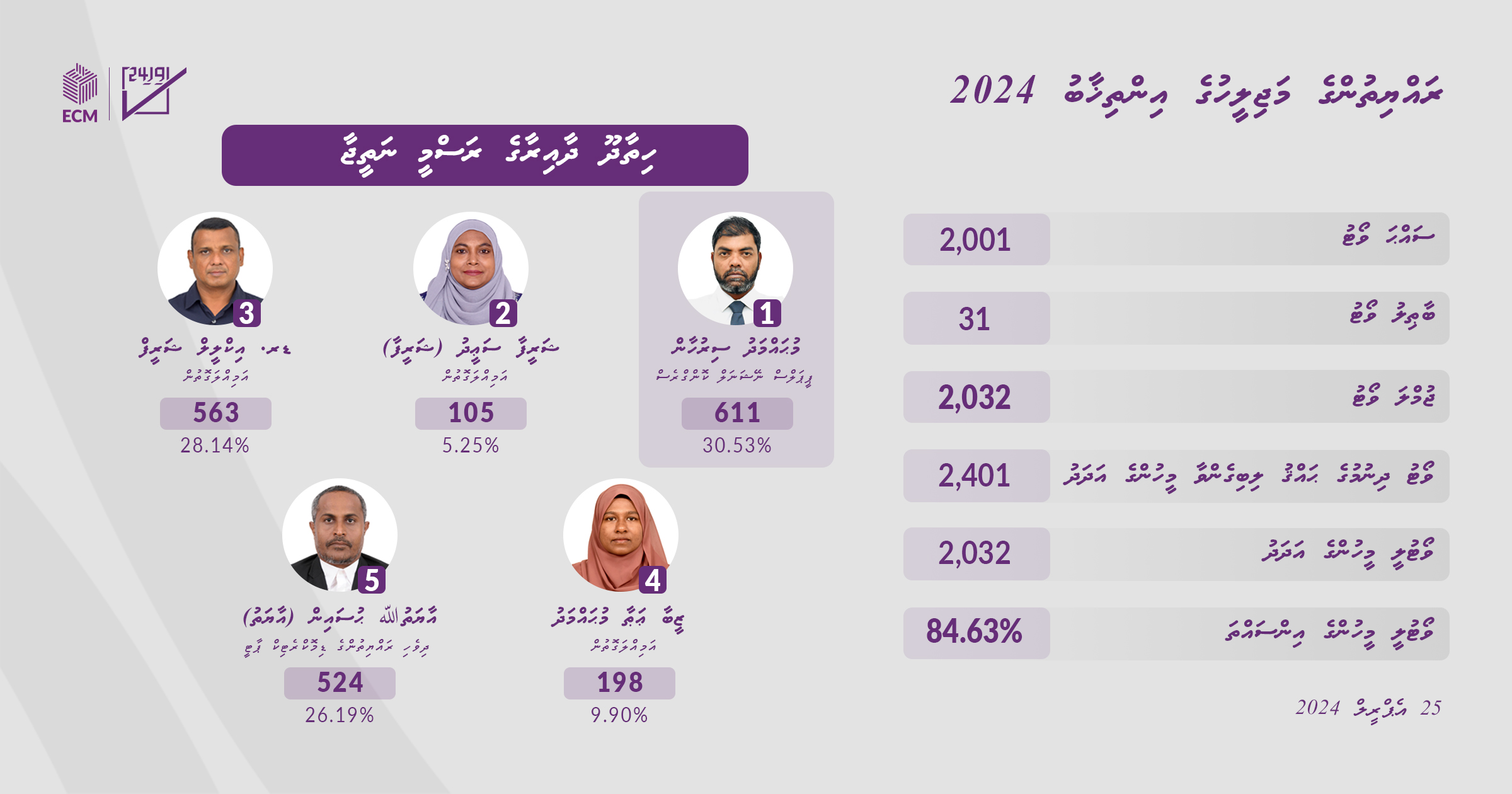 ރައްޔިތުންގެ މަޖިލީހުގެ އިންތިޚާބު 2024 - ބ. އަތޮޅުގެ ރަސްމީ ނަތީޖާ