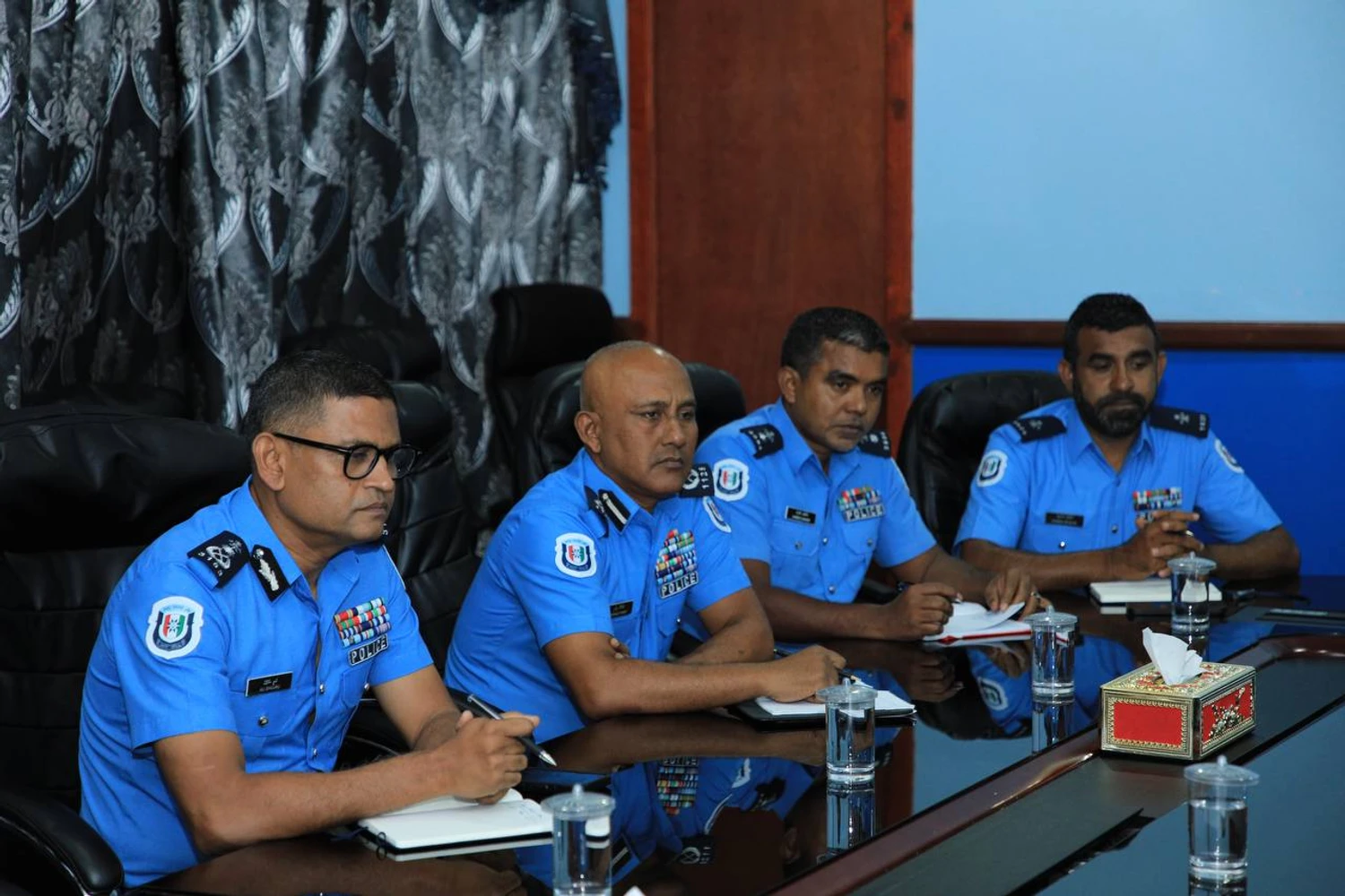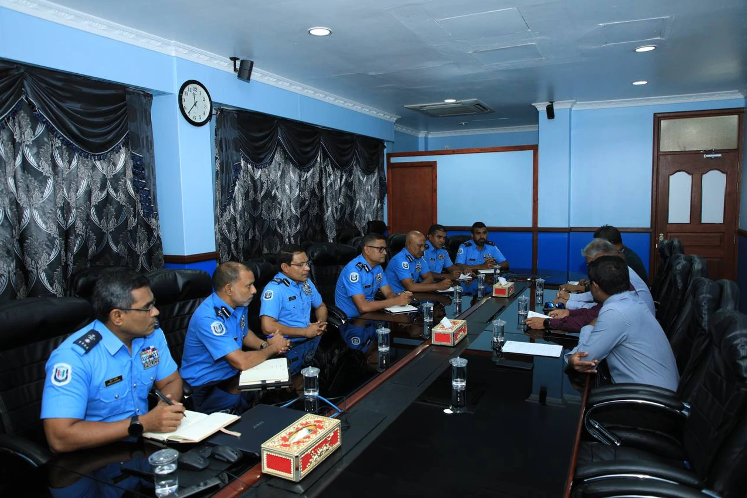 ރައްޔިތުންގެ މަޖިލީހުގެ އިންތިޚާބު 2024 ގެ ބައެއް މަސައްކަތްތަކާ ގުޅޭގޮތުން މަޝްވަރާކުރުމަށްޓަކައި، ކޮމިޝަނަރ އޮފް ޕޮލިސް އަލީ ޝުޖާޢު އަދި މިކޮމިޝަނުގެ މެންބަރުންނާއެކު 2024 ޖަނަވަރީ 28 ވީ އާދީއްތަ ދުވަހު ކުރިއަށްގެންދިޔަ ބައްދަލުވުމުގެ ތެރެއިން