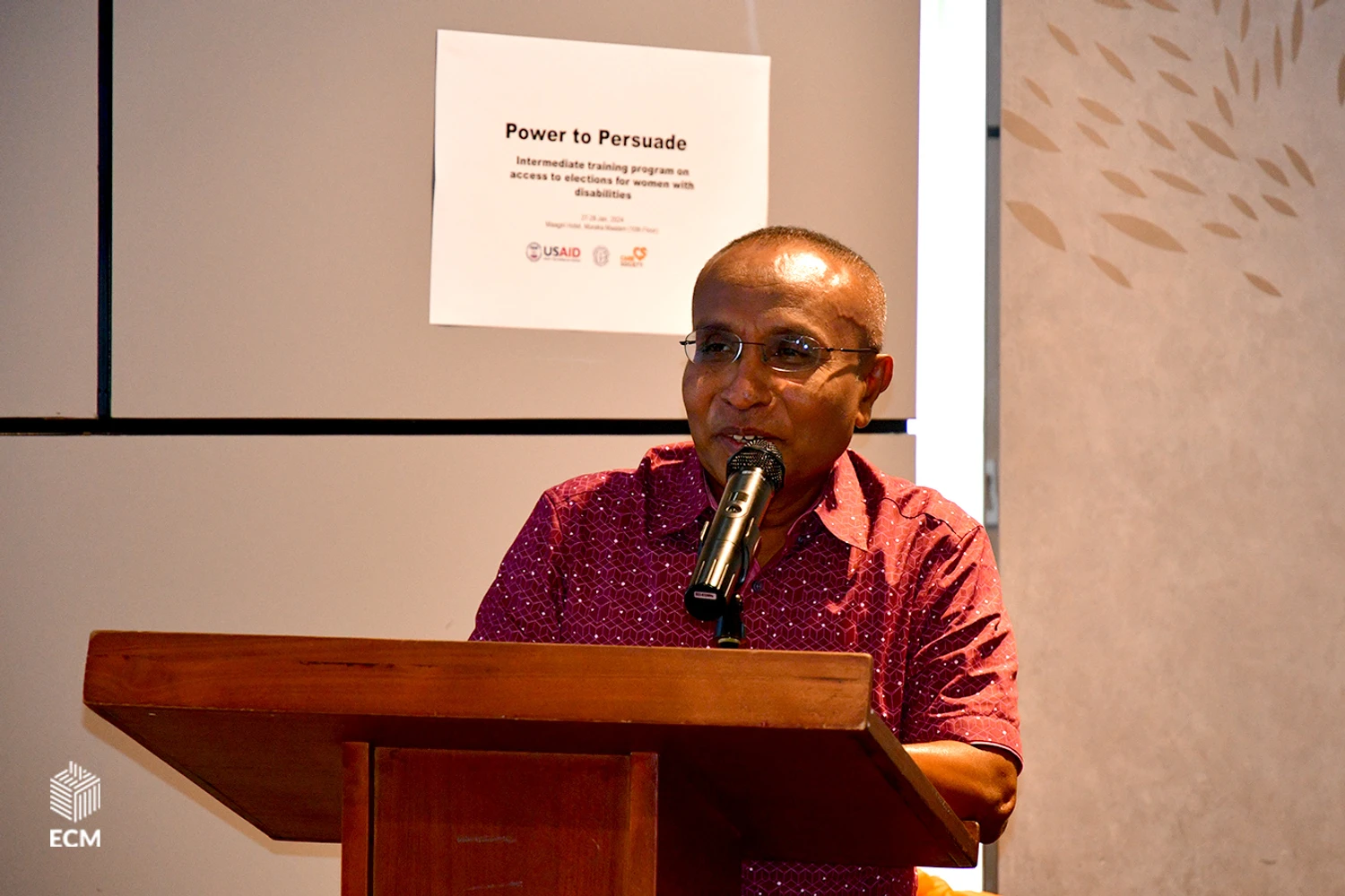 އިންޓަރނޭޝަނަލް ފައުންޑޭޝަން ފޯ އިލެކްޓޯރަލް ސިސްޓަމްސް (އައި.އެފް.އީ.އެސް) ގެ ފަރާތުން “ޕަވަރ ޓު ޕަރސުއޭޑް” ގެ ނަމުގައި ކުރިއަށްގެންދިޔަ ތަމްރީން ޕްރޮގްރާމު ޝަރަފުވެރިކޮށްދެއްވާ އިލެކްޝަންސް ކޮމިޝަނުގެ ނައިބު ރައީސް އަލްއުސްތާޛް އިސްމާޢީލް ޙަބީބު ޢަބްދުއްރަޙީމް ވާހަކަފުޅު ދެއްކެވުމުގެ ތެރެއިން